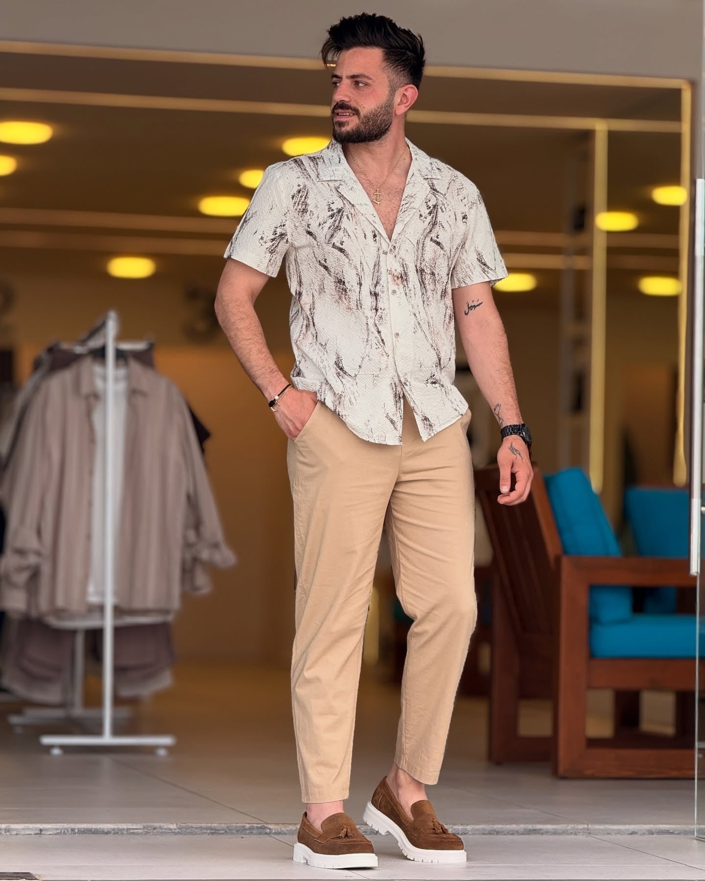 \nWhether you're unwinding after a long day or hosting a casual brunch at home, this chemise is a versatile addition to your collection. Pair it with a cozy cardigan for a chic loungewear look, or wear it solo for an effortlessly elegant vibe. The Floral Brown/Beige Chemise can transition seamlessly from indoor relaxation to outdoor socializing, making it the perfect go-to piece for any occasion. \n \nElevate your wardrobe with this stunning chemise that encapsulates comfort and style. Embrace your femininity and let the Floral Brown/Beige Chemise be your new favorite outfit!