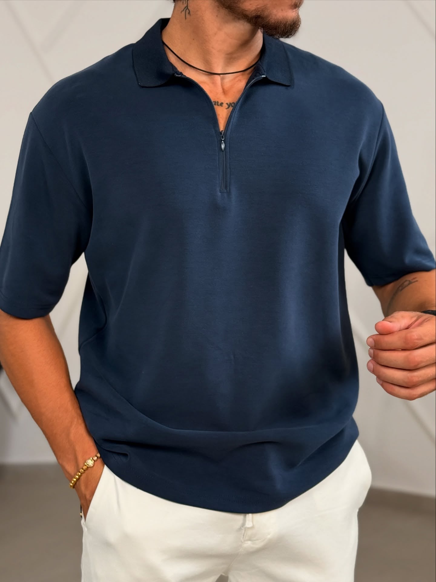 Navy Blue Half Zip Polo