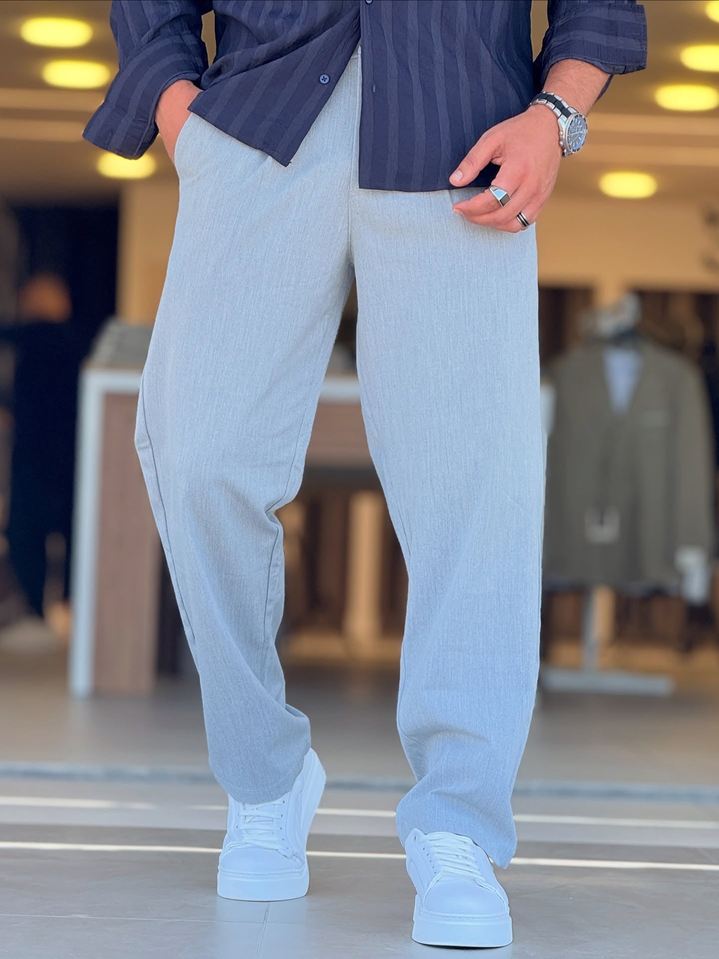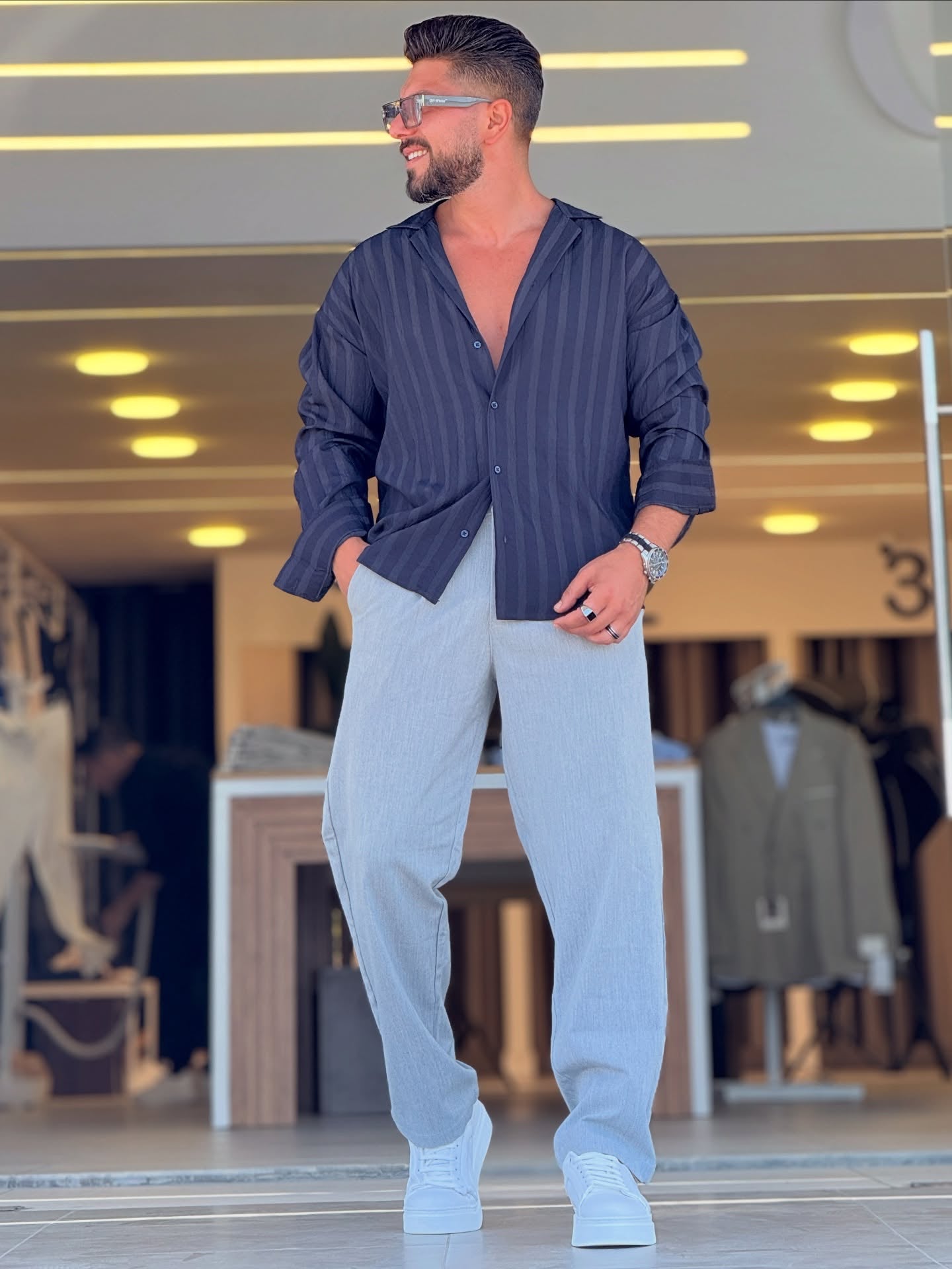 Navy Blue Striped Shirt