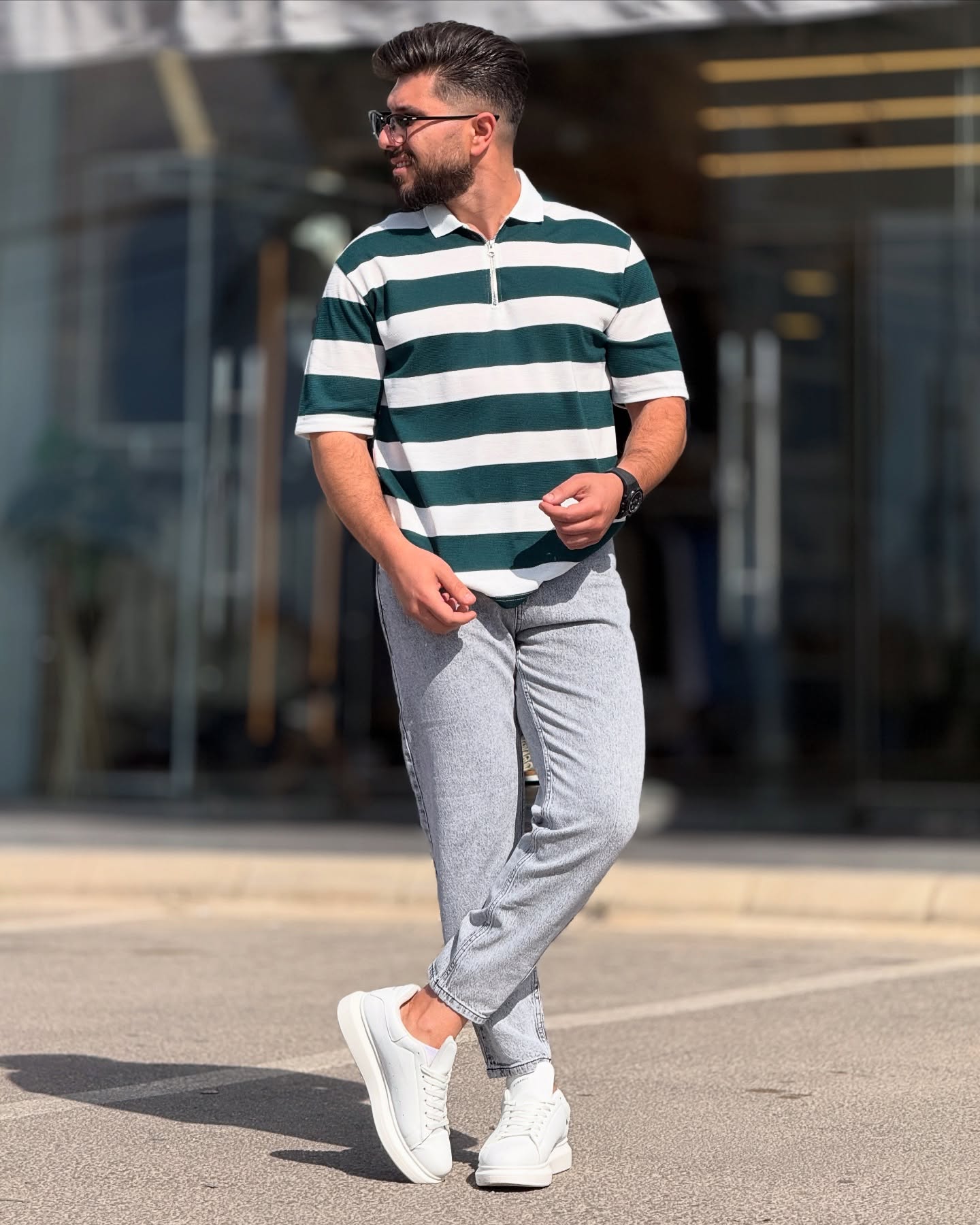 White & Black Striped Polo