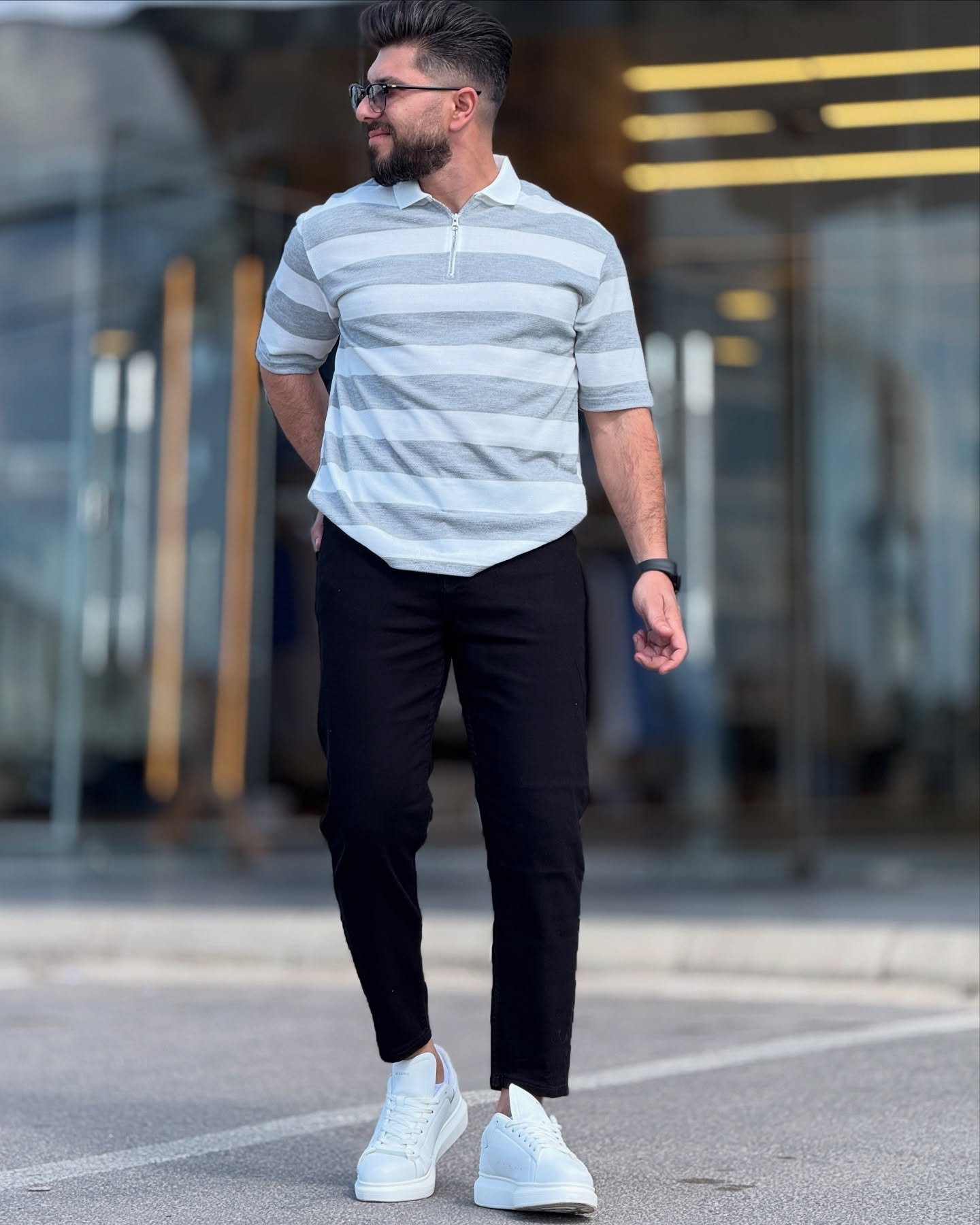 White & Grey Striped Polo